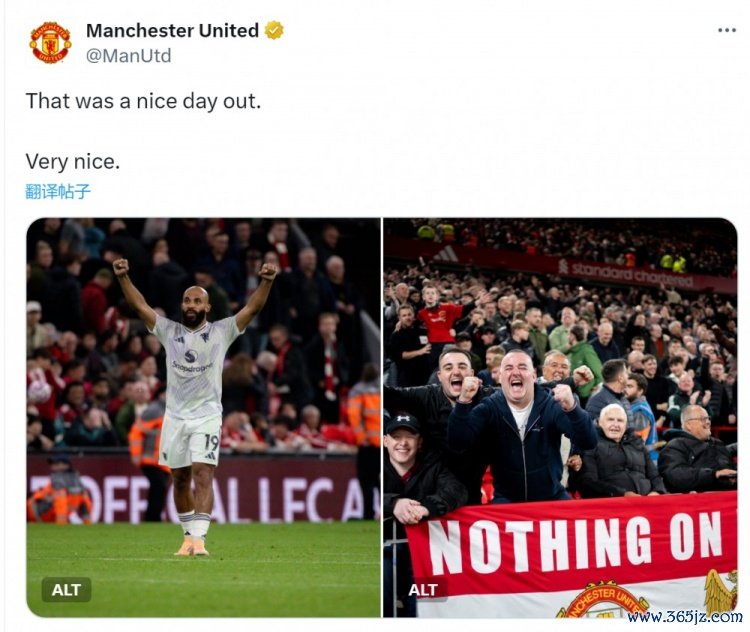 攻陷安菲尔德!曼联官方社媒庆祝到手:奥密的客场之旅