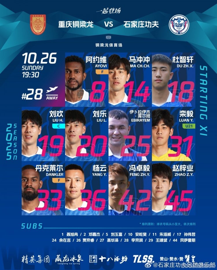 石家庄功夫客场挑战重庆铜梁龙首发名单!