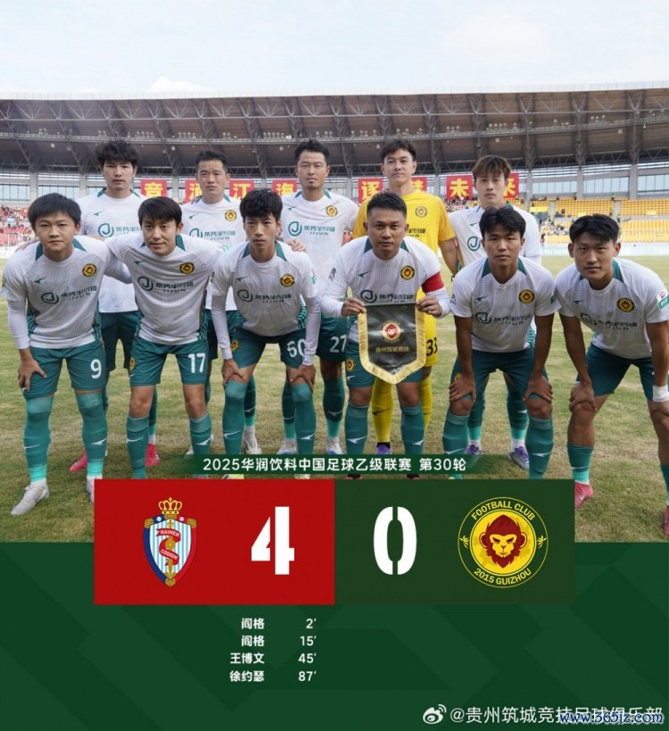 0:4海门珂缔缘 贵州筑城竞技奇迹联赛的第一年15胜5平10负