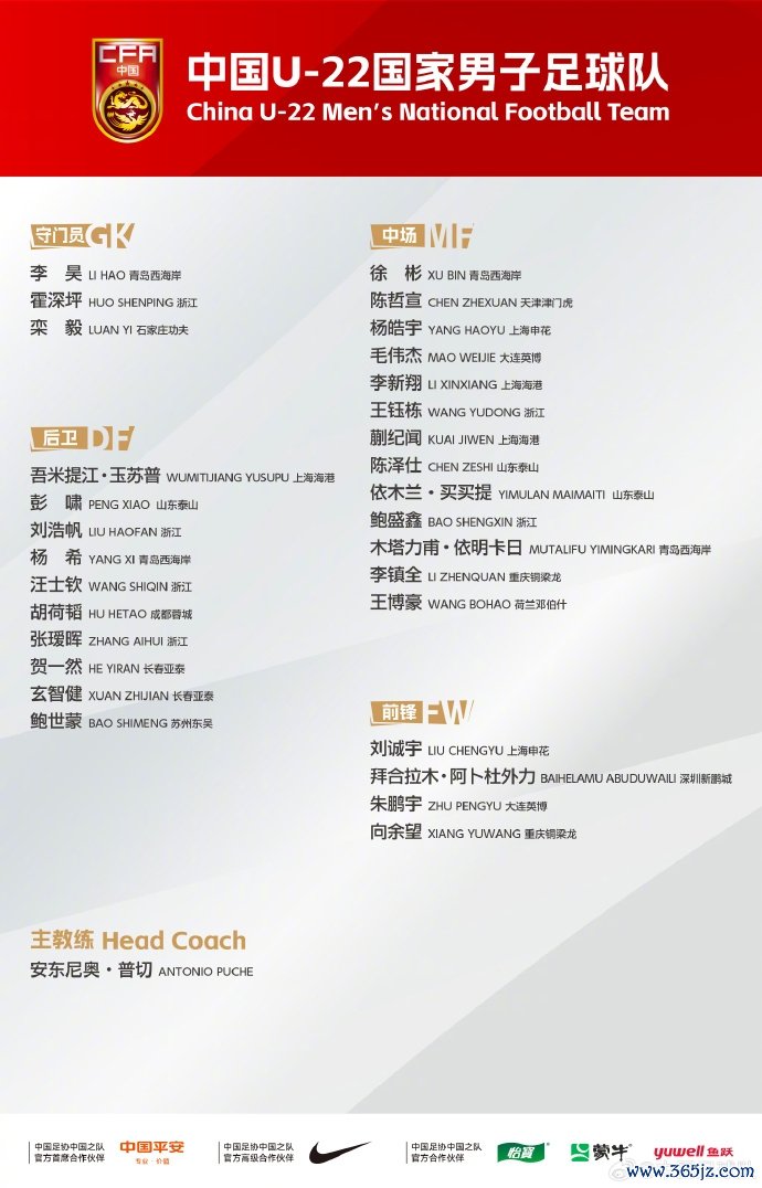 11月5日讯 U22国足公布最新一期集训名单,留洋中场王博豪初度入选。