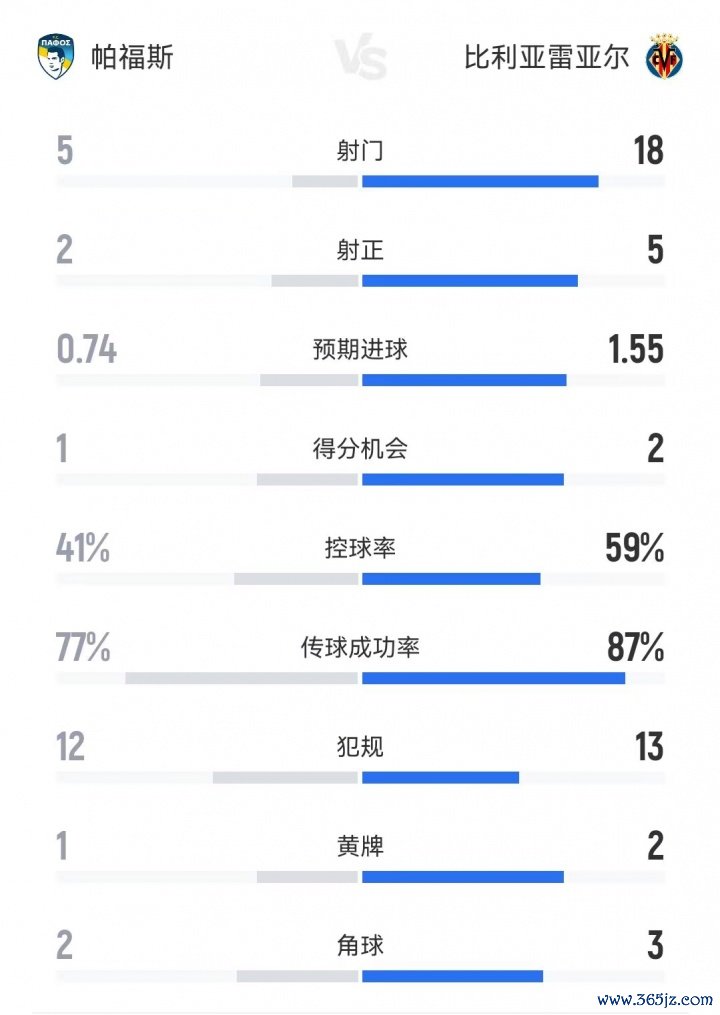而无奈成为配景板的比利亚雷亚尔本场比赛在数据上占据透彻上风,实在在通盘的统计数据上皆卓绝敌手,但18脚射门、5次射正完全没能提拔为进球,反倒被帕福斯专揽角球契机破门。