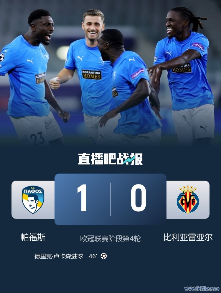 11月06日讯 欧冠第4轮,塞浦路斯球队帕福斯主场1-0征服比利亚雷亚尔,这支欧冠新军获得了队史在欧冠正赛的首胜。