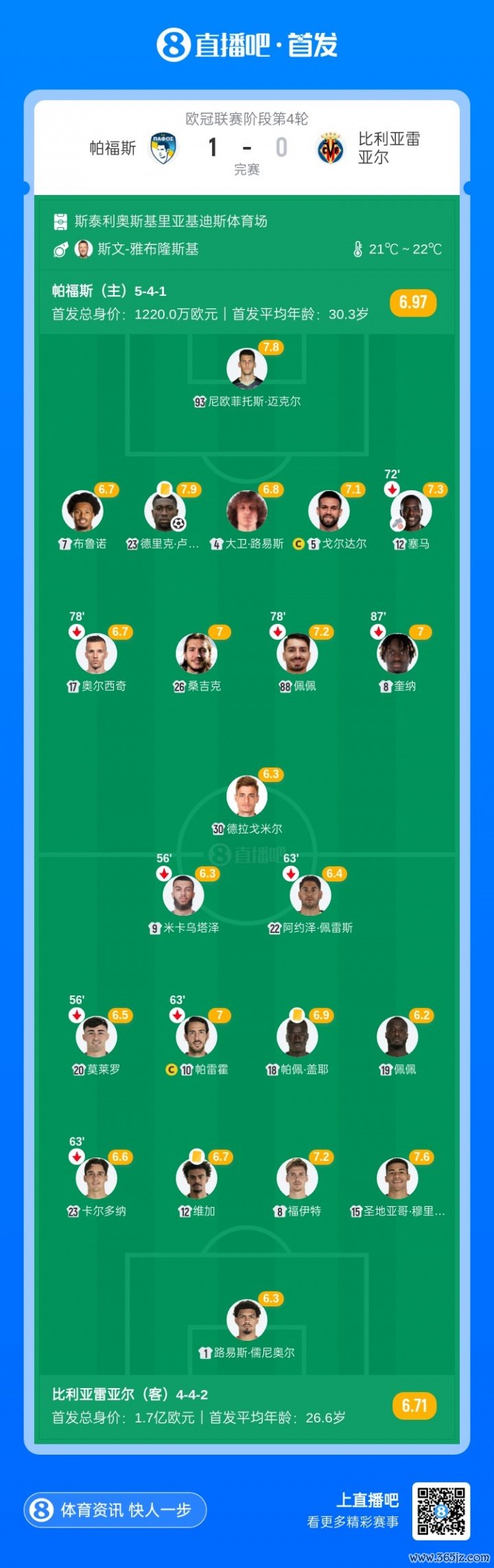 这是西甲第3?黄潜成帕福斯欧冠首胜配景板 首发身价是对方14倍