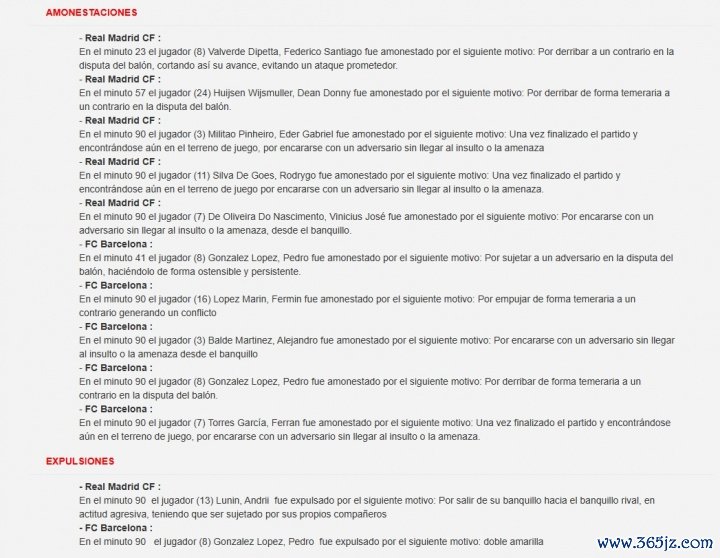 此外,费兰、巴尔德、费尔明、罗德里戈与米利唐因比赛截至仍在场上与敌手扶持吃到黄牌。