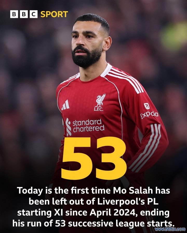 萨拉赫上一次在英超比赛中替补,已经2024年4月27日利物浦2-2战平西汉姆联,其时利物浦已经克洛普握教,萨拉赫下半场比赛替补登场。而后53场英超联赛,萨拉赫一首先发。