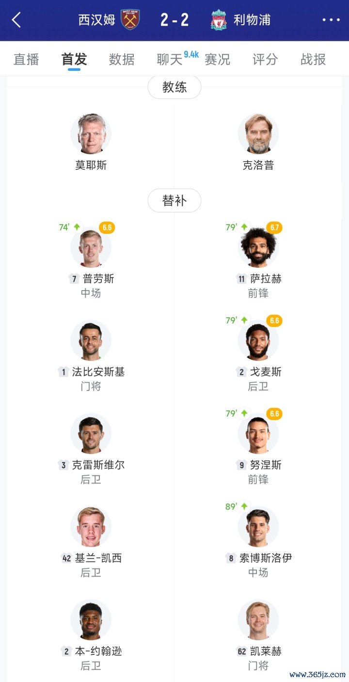 利物浦本场替补:25-马马尔达什维利、26-罗伯逊、3-远藤航、17-琼斯、42-尼奥尼、14-基耶萨、22-埃基蒂克、73-恩古莫哈、11-萨拉赫