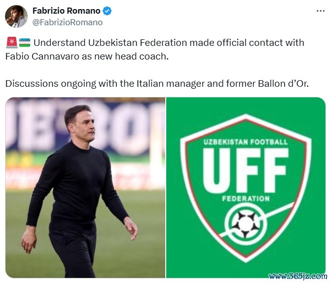 罗马诺:卡纳瓦罗获乌兹别克斯坦足协隆重构兵,正议论合手教国度队