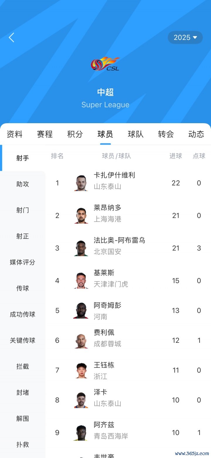尖锐化!中超最新弓手榜:莱昂纳多仅落伍瓦科1球!两东谈主均0点球
