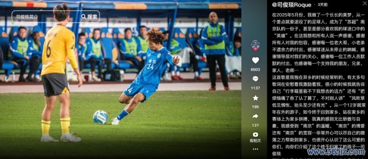 在2025年5月份,我作念了一个长长的好意思梦,从一个差点就要退役了的足球东说念主,成为了“苏超”南京队的一份子,以致是部分可爱我的球迷口中的能人。在这我念念和通盘东说念主说一声感谢,感谢通盘东说念主对我的包容,感谢每一位老年老、小老弟不遗余力的付出,感谢球迷从未住手的高歌,感谢率领层对咱们的温雅,感谢每一位责任主说念主员默然的付出,也感谢每一个相沿我的一又友、昆玉、家东说念主、浑厚……