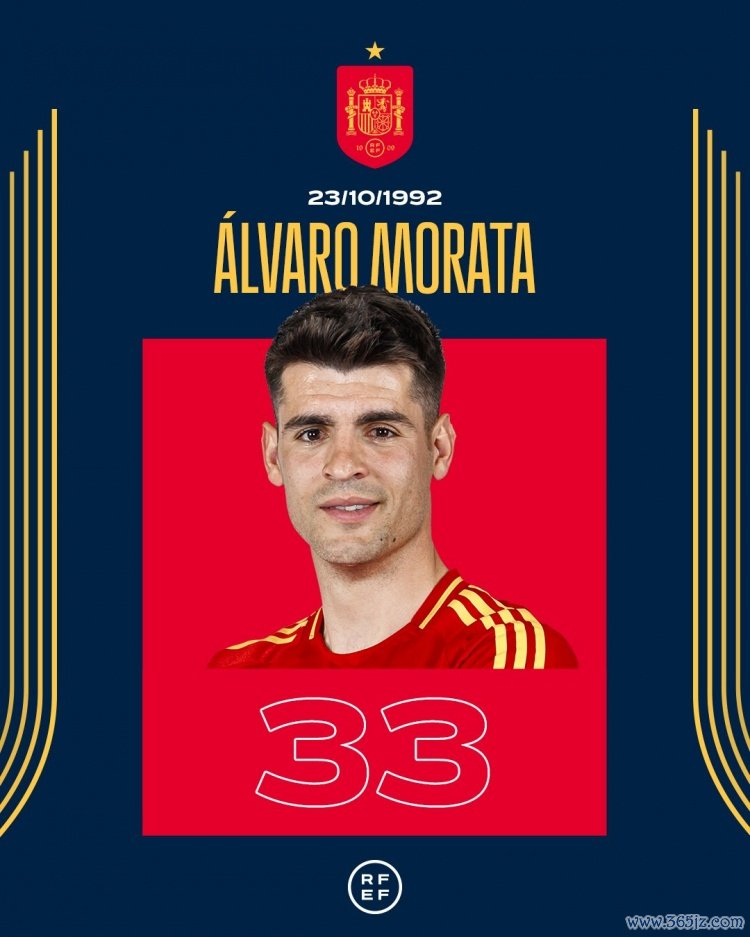 西班牙队官方社媒晒出为莫拉塔制作的生辰海报,配文:“祝你生辰逍遥,莫拉塔。这位科莫先锋、西班牙队史第四弓手迎来了我方的生辰。”