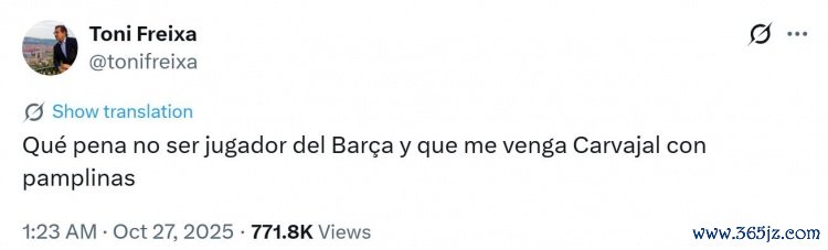 10月27日讯 当地时分10月26日,本赛季西甲第10轮国度德比,巴萨客场1-2负于皇马,前巴萨主席候选东谈主弗雷克萨(Toni Freixa)赛后更新社媒,品评皇马球员卡瓦哈尔短缺体育精神。