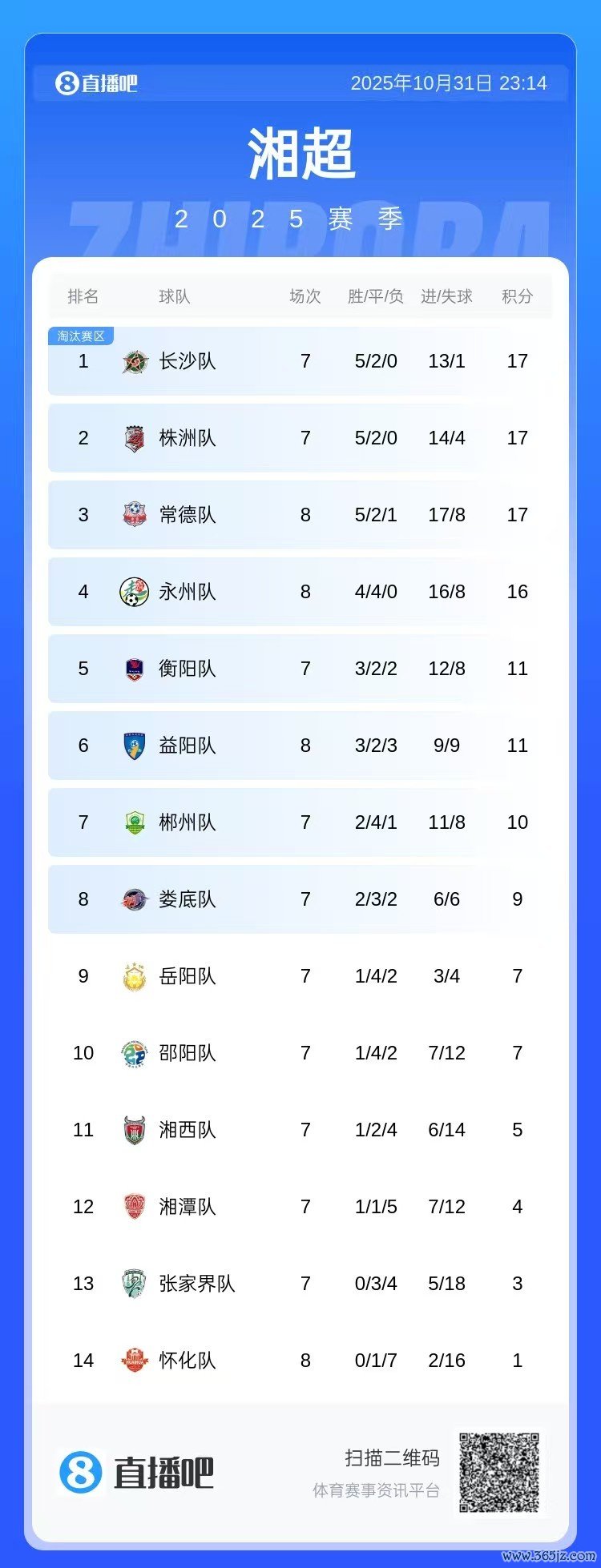 湘超本日赛果:常德1-0怀化暂列第三,永州3-2益阳暂列第四