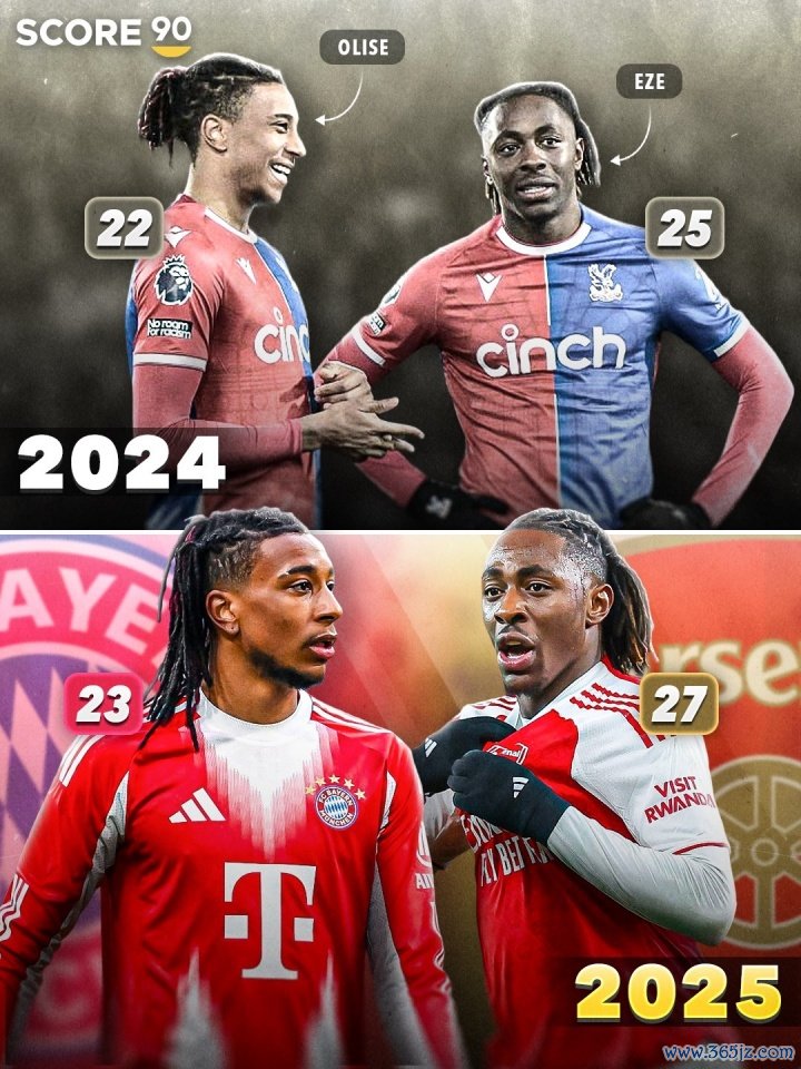 客岁夏天,拜仁以5300万欧元从水晶宫引进奥利塞,他本赛季已为拜仁出场23次孝顺12球11助攻,现时德回身价已升至1.3亿欧元。
