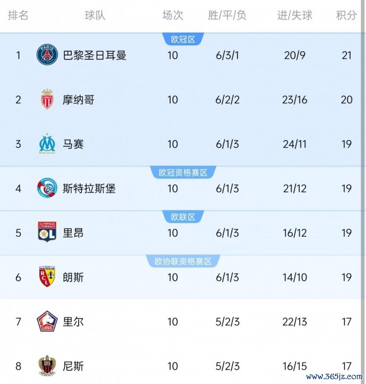 10月30日讯 法甲战罢10轮,巴黎积21分名次首位,但只朝上第6名朗斯2分。