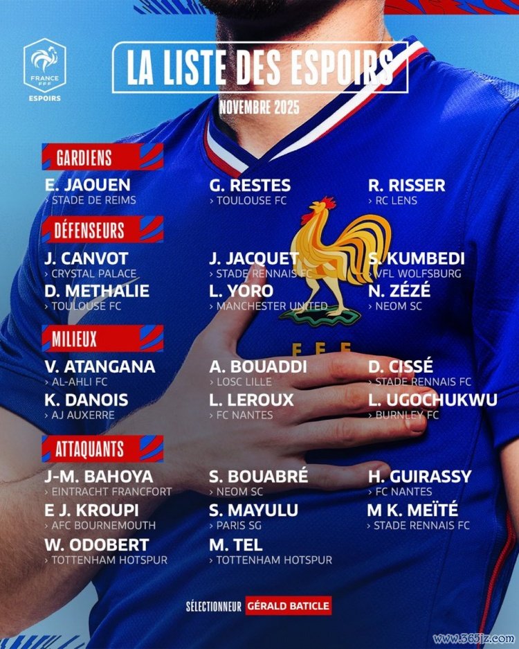 法国U21本月将投入2027年U21欧洲杯预选赛,先后对阵瑞士U21、法罗群岛U21。