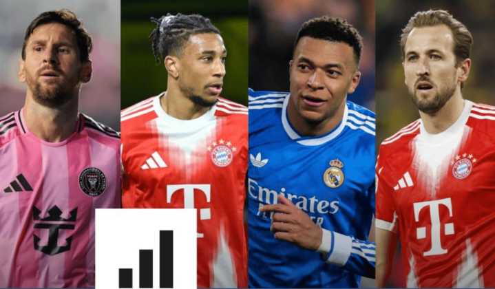 考虑比赛难度系数,这位阿根廷人仍然保持优胜者(射门射门进球数调整为66.3),略微领先于基利安-姆巴佩(65.4),姆巴佩为皇家马德里贡献了41次助攻分球射门射门进球数(包括37个强攻羽毛羽排球排网框柱射门射门进球数)。