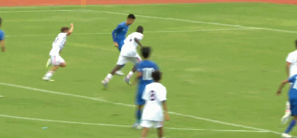 第35分钟,里昂快速反击,亚历山大单刀突入禁区之后低射被吴彦南充公。