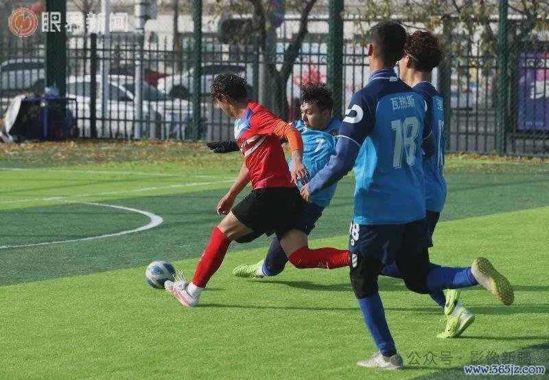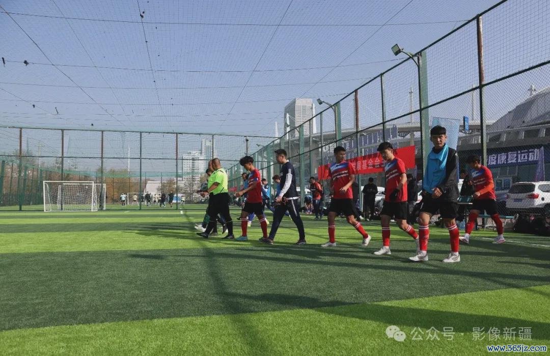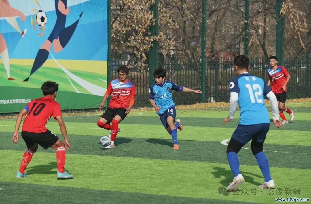 11月3日,在比赛中,身穿红色队服的塔城地区托里县队与乌鲁木王人市沙依巴克区队张开冠亚军角逐。记者王畅彤摄